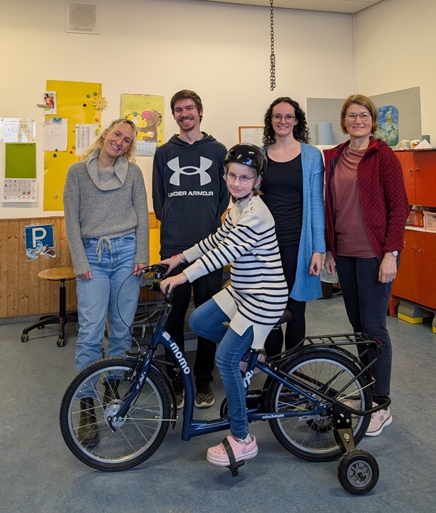 Das Therapiefahrrad wird für Schülerinnen und Schüler eingesetzt, die das Fahren mit einem Zweirad erlernen möchten. Durch die adaptiven Stützräder ist ein sicherer und schrittweiser Übergang zum freien Fahren gewährleistet. Die Schülerinnen und Schüler sind dadurch nicht dauerhaft auf die Hilfe eines Erwachsenen angewiesen, sondern können zunehmend selbstständig und eigenverantwortlich agieren.
